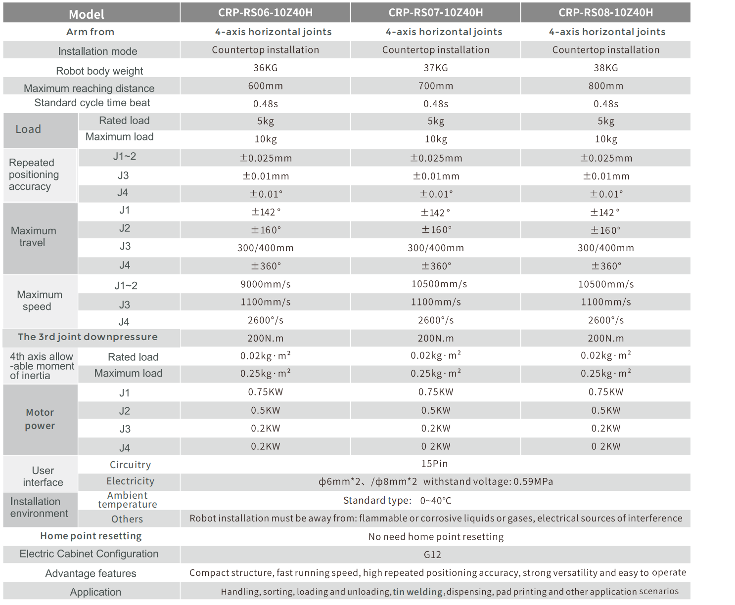 • Available in 800mm arm length specifications, up to 10kg payload, rated payload of 5kg.