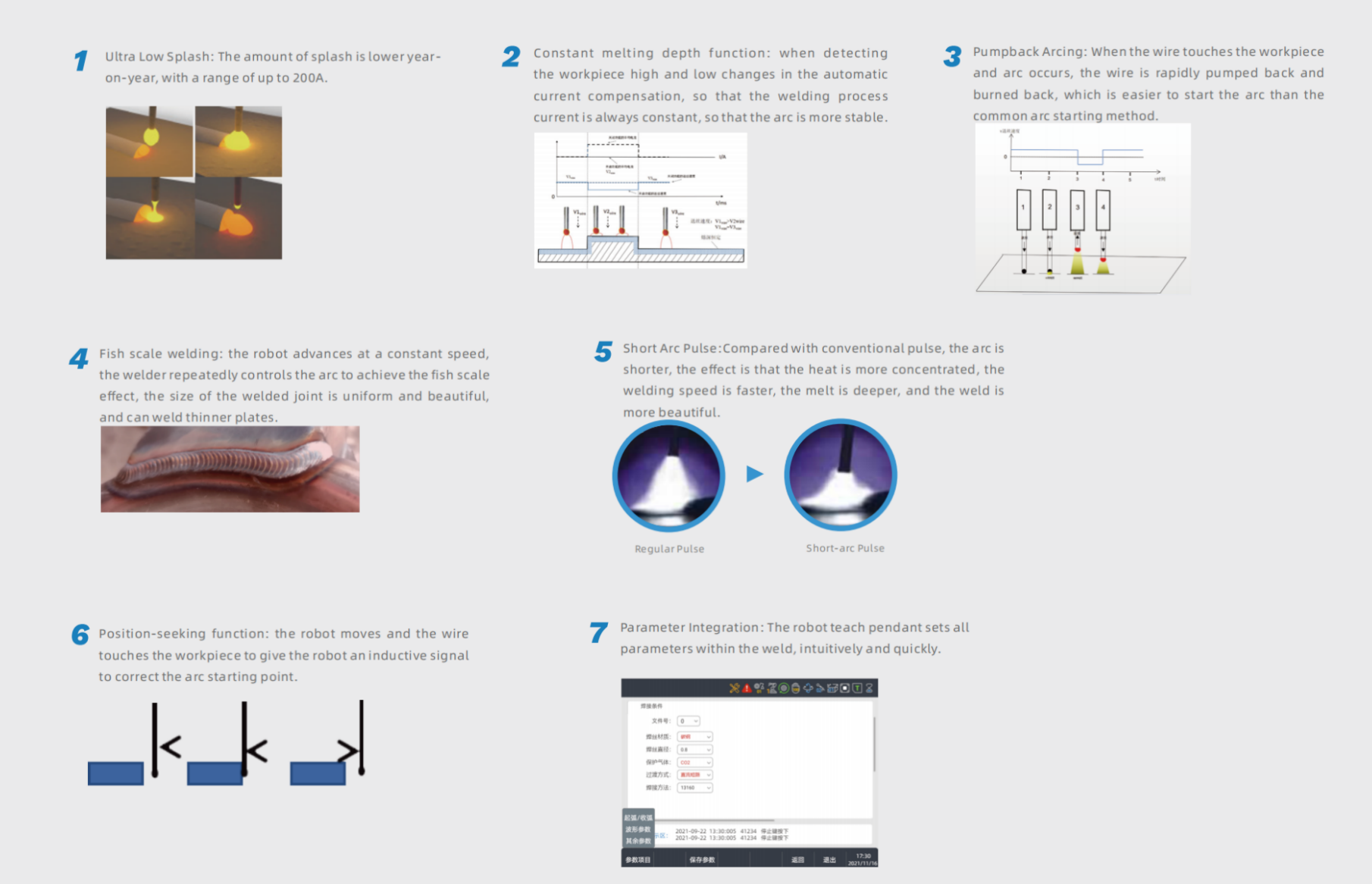 CRP DS series welding machine adopts high-performance all-digital processor to realize three-level soft-switching technology, the frequency is up to 100KHz welding power supply, MAG/CO? can realize ultra-low spatter welding, and the wide range of the current section cover, 200A welding conditions under the amount of spatter is still getting very good control effect, 500A pulse welder temporary loading rate of 100%, 350A and 500A comes with a short-arc pulse to make the short arc pulse of 350A and 500A makes the weld seam more beautifully shaped. At the same time, SL is a cold metal transition welder with lower spatter and more stable arc.