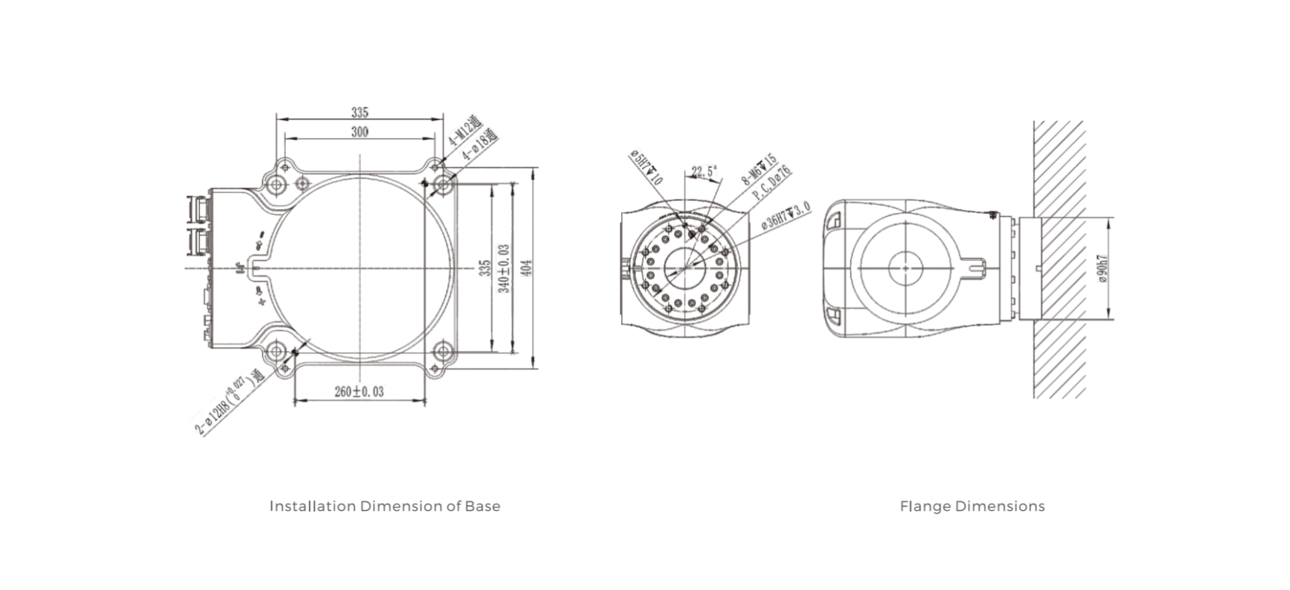 • The robot in the axes of J2 J3 J4 is reserved installation holes to install fixed solenoid valve and other accessories. There are IO port and dual-circuit gas pipe at J3 axis to meet the handling application.