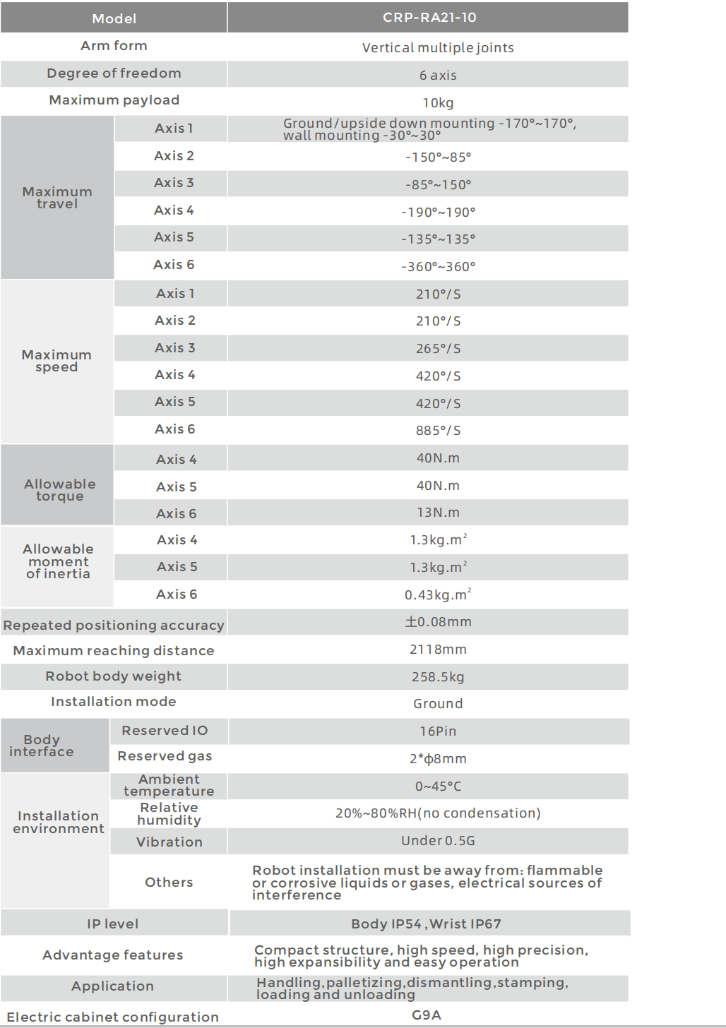 • The overall structure of the robot is highly compact, light weight, more lightweight and applicable, especially the wrist is smaller to meet more scenes.