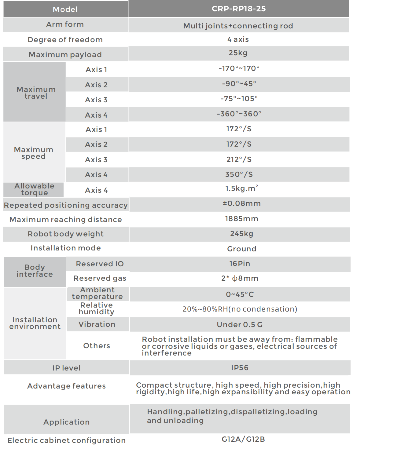 • The robot body is with dual-circuit gas pipe to meet the handling demands.
