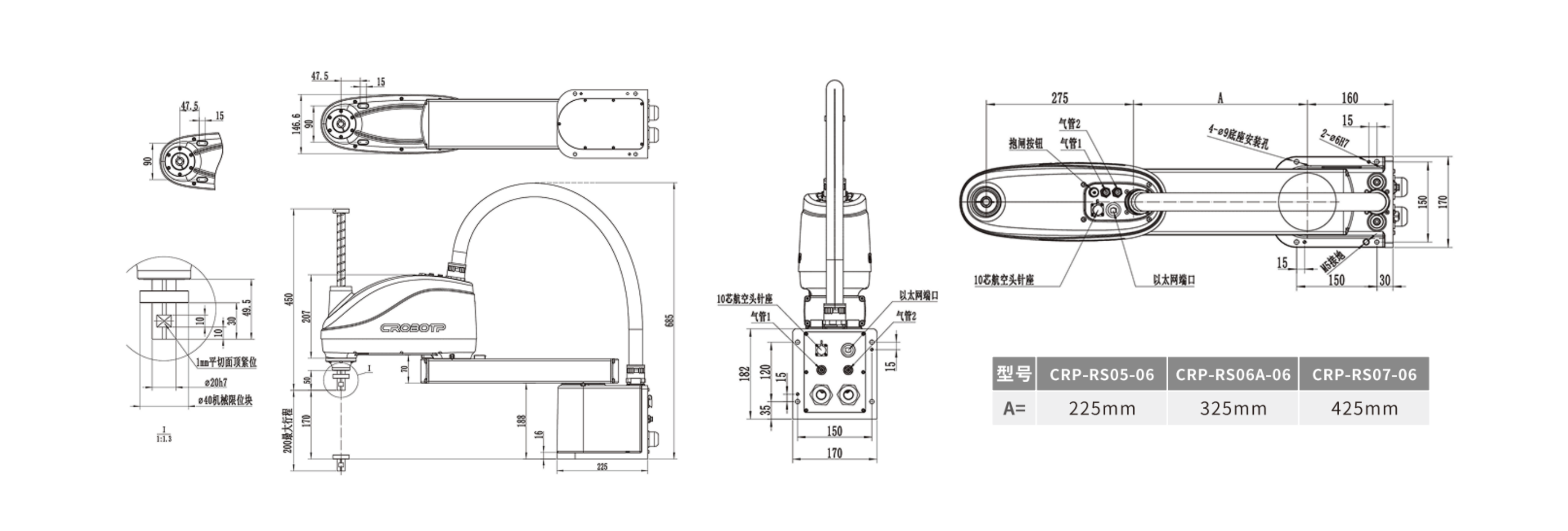 ? 手臂內(nèi)置千兆網(wǎng)線,便于相機(jī)連接。