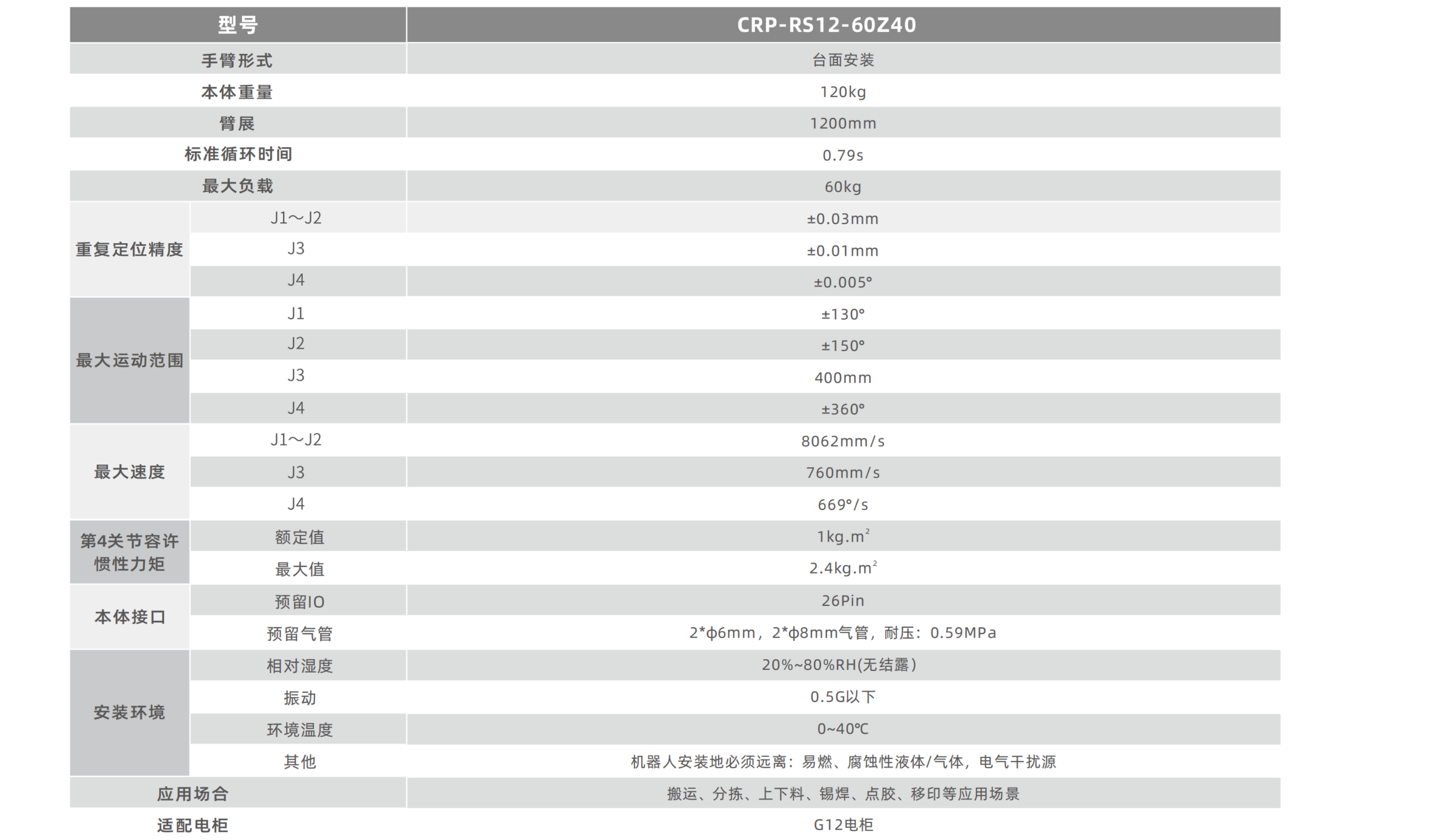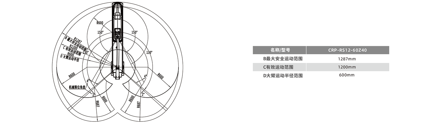 ? 機器人最大負載可達60kg,臂展可達1200mm,Z軸有效行程可滿足400mm。