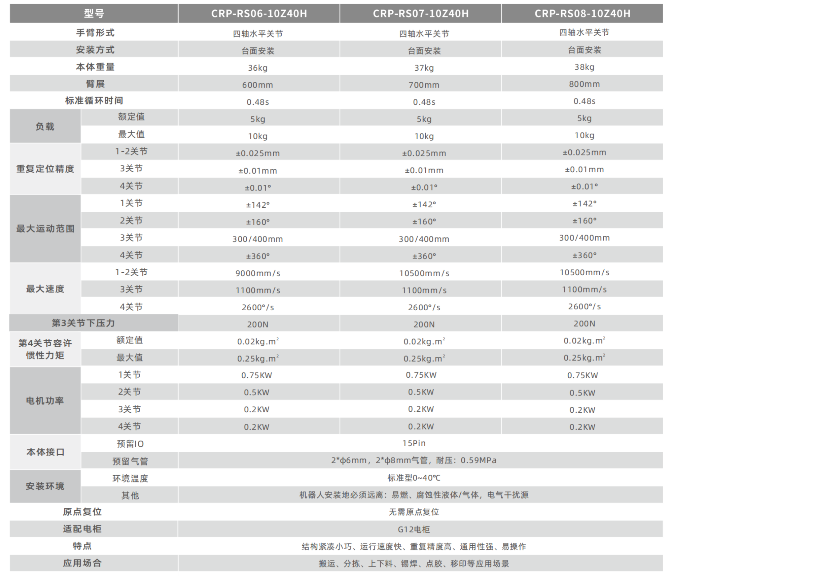 ? 可提供800毫米臂長規(guī)格,最高有效負載可達10kg,額定有效負載為5kg。