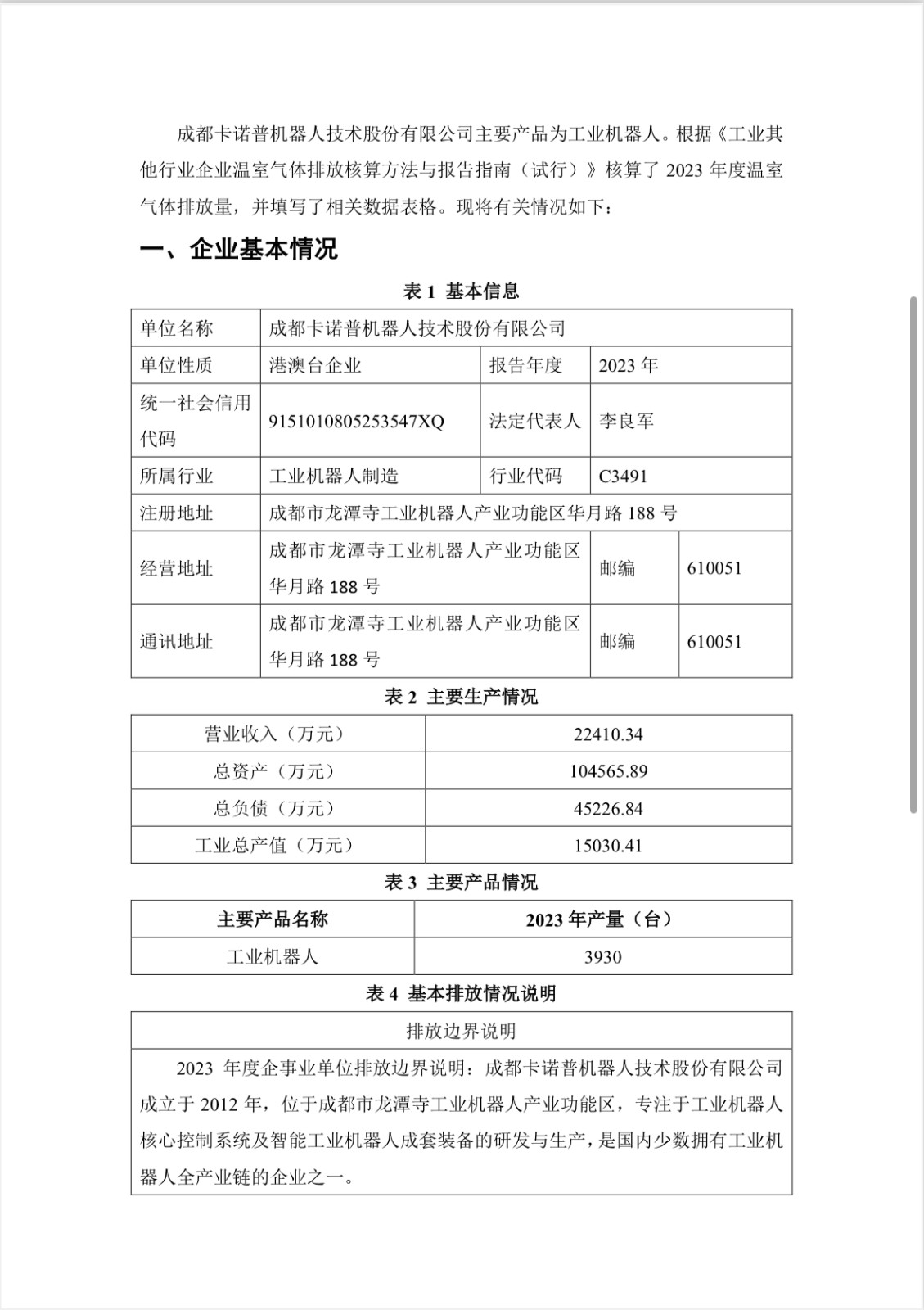 成都星空電競機器人技術股份有限公司 2023 年度 溫室氣體排放報告