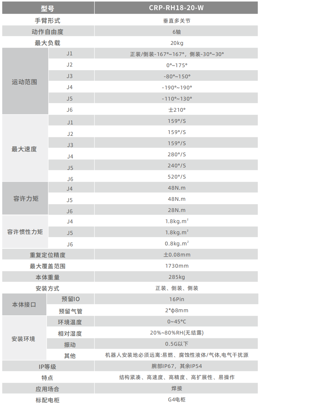 工作空間大、運(yùn)行速度快、重復(fù)定位精度高,適用于焊接應(yīng)用,適用范圍廣。