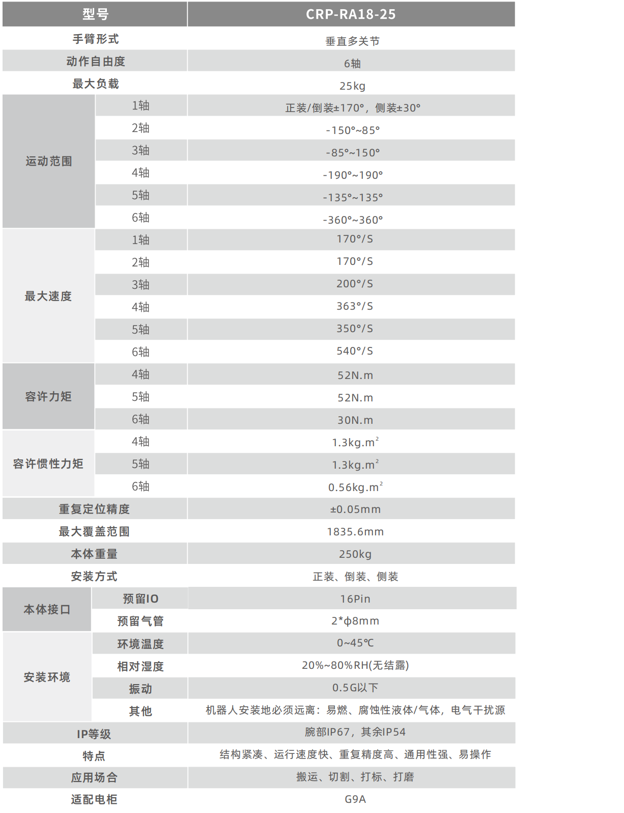 • 機(jī)器人整體結(jié)構(gòu)高度緊湊、輕量化,更加輕巧適用,尤其腕部更加小巧,滿足更多的場景。