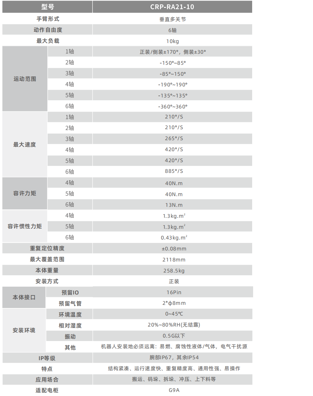 • 機器人整體結構高度緊湊、輕量化,更加輕巧適用,尤其腕部更加小巧,滿足更多的場景。