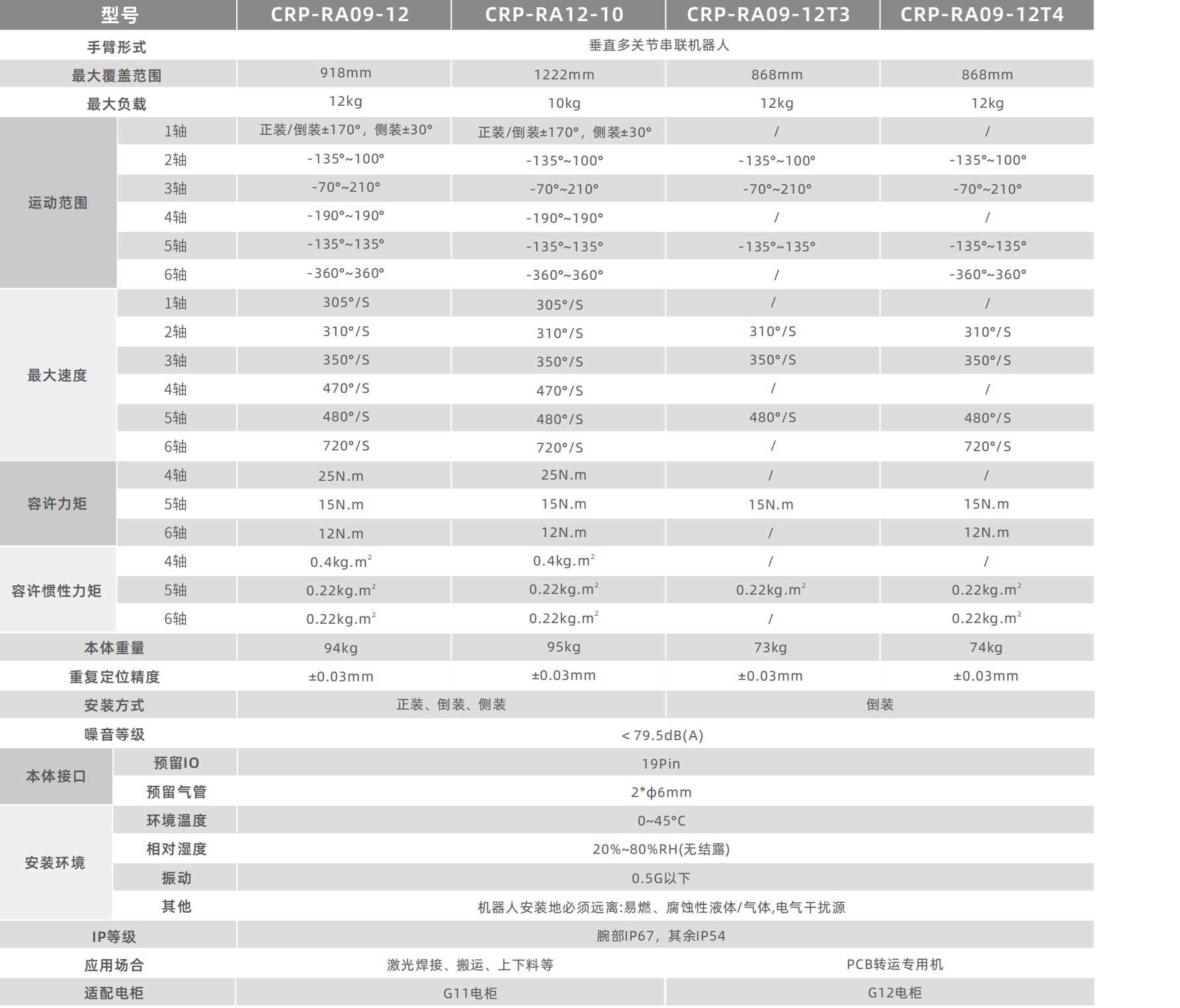 高速高精,效率更高。整機(jī)采用全鋁機(jī)身設(shè)計(jì),較同級(jí)別產(chǎn)品質(zhì)量更輕,RA09-12系列相比RA09A-07系列左右速度提高了30%,標(biāo)準(zhǔn)門型軌跡0.42S,重復(fù)定位精度士0.03mm,實(shí)現(xiàn)快速生效,提高生產(chǎn)產(chǎn)能。
