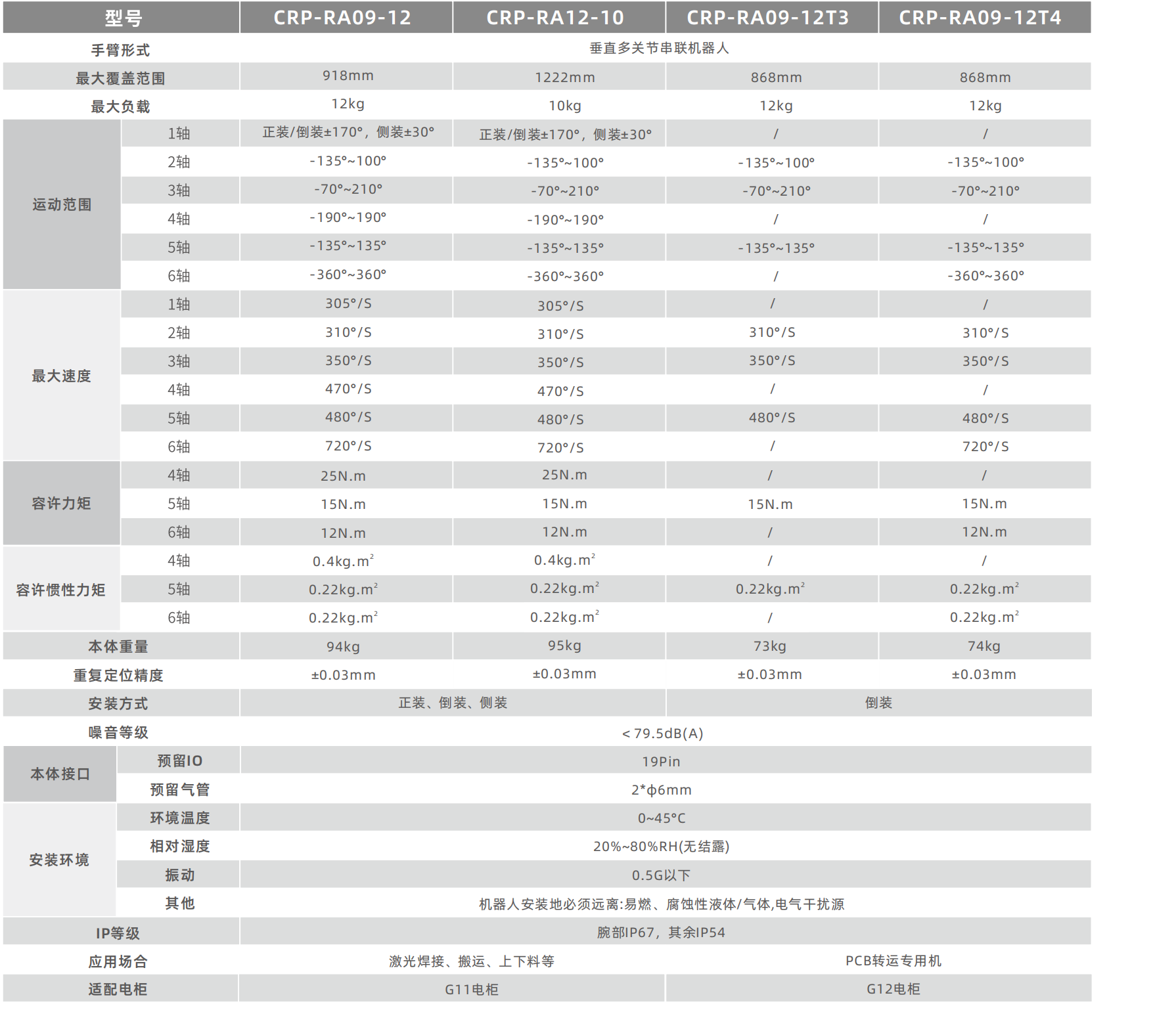 • 高速高精,效率更高。整機(jī)采用全鋁機(jī)身設(shè)計(jì),較同級(jí)別產(chǎn)品質(zhì)量更輕,RA09-12系列相比RA09A-07系列左右速度提高了30%,標(biāo)準(zhǔn)門型軌跡0.42S,重復(fù)定位精度士0.03mm,實(shí)現(xiàn)快速生效,提高生產(chǎn)產(chǎn)能。